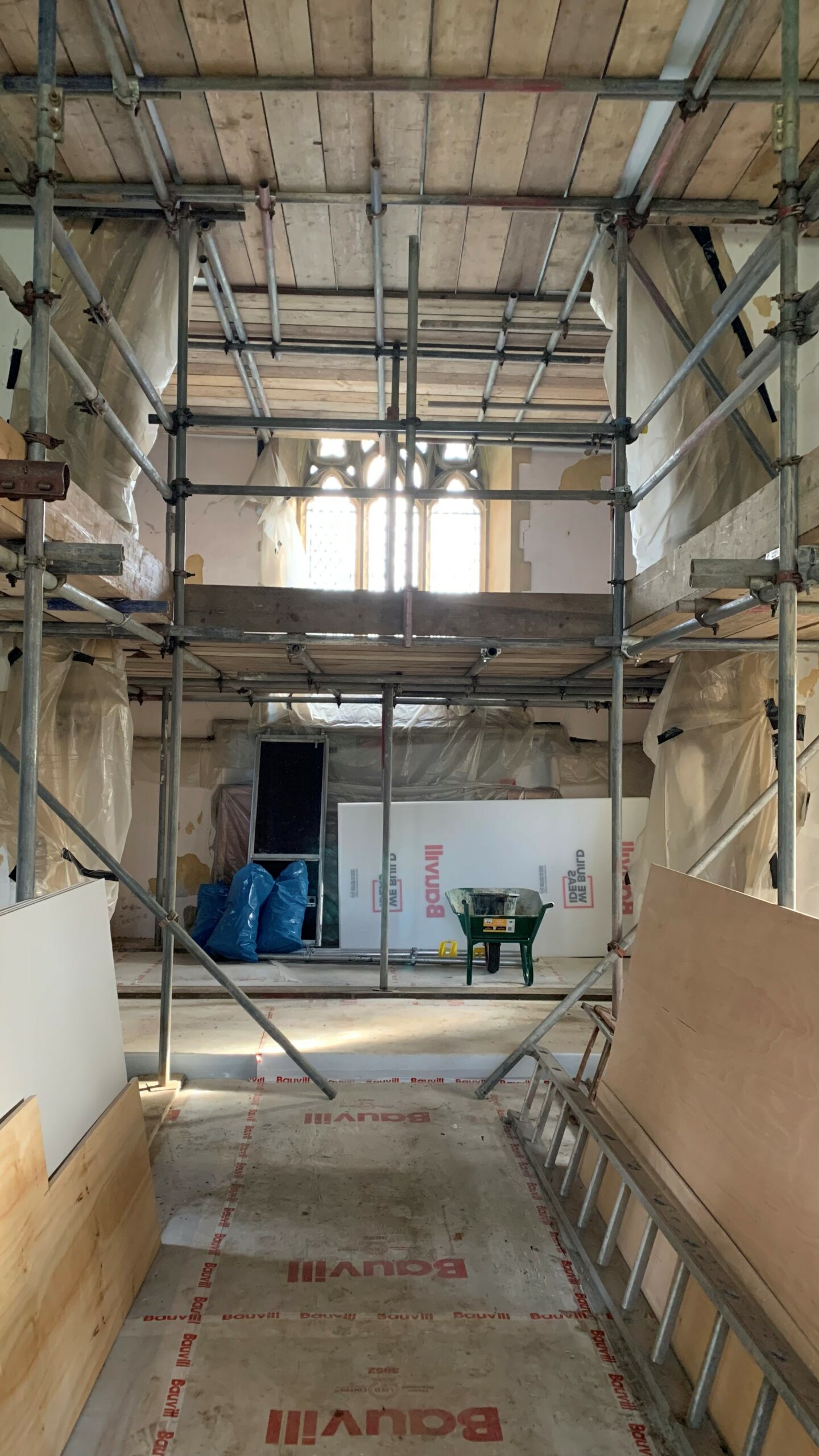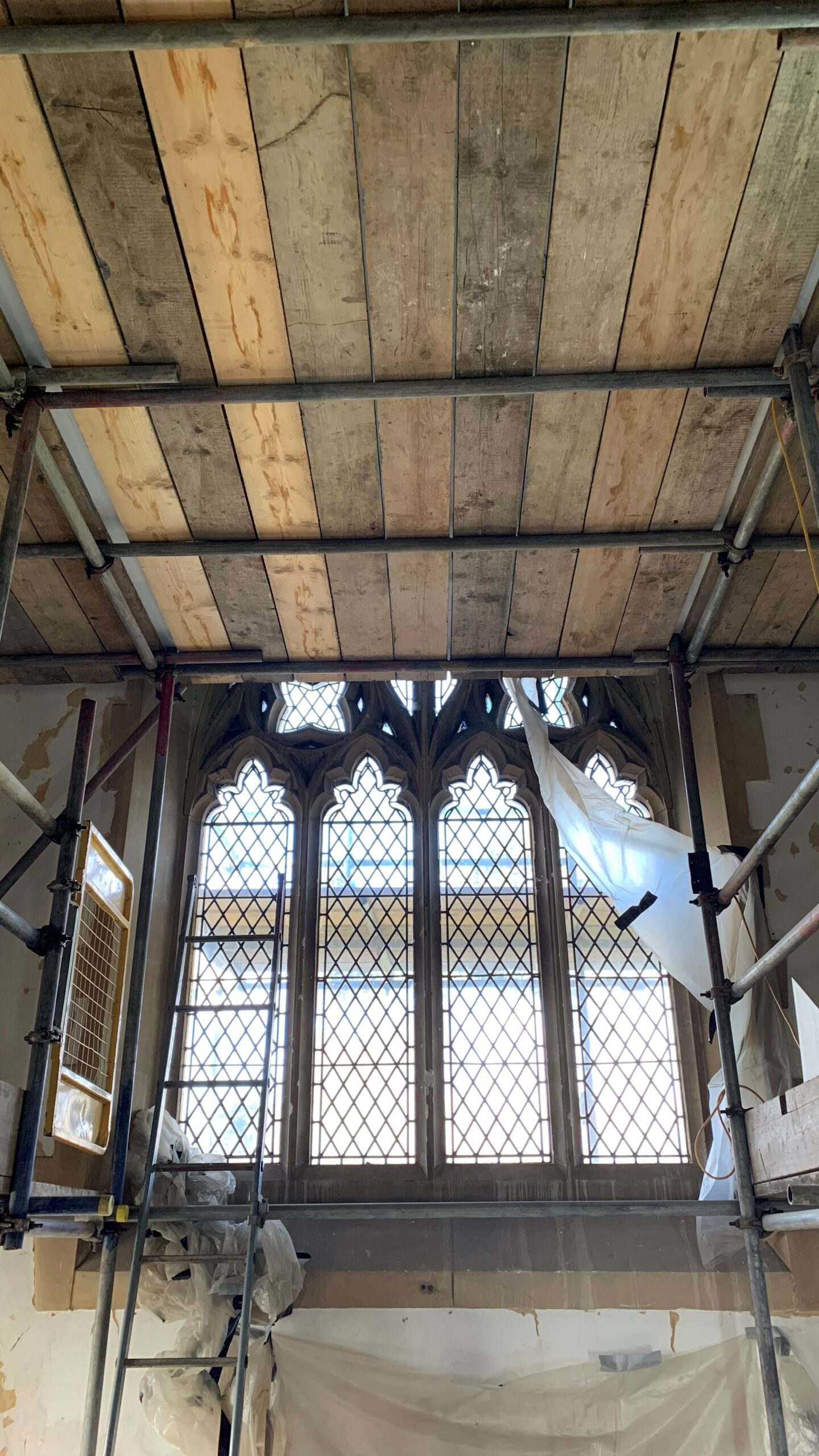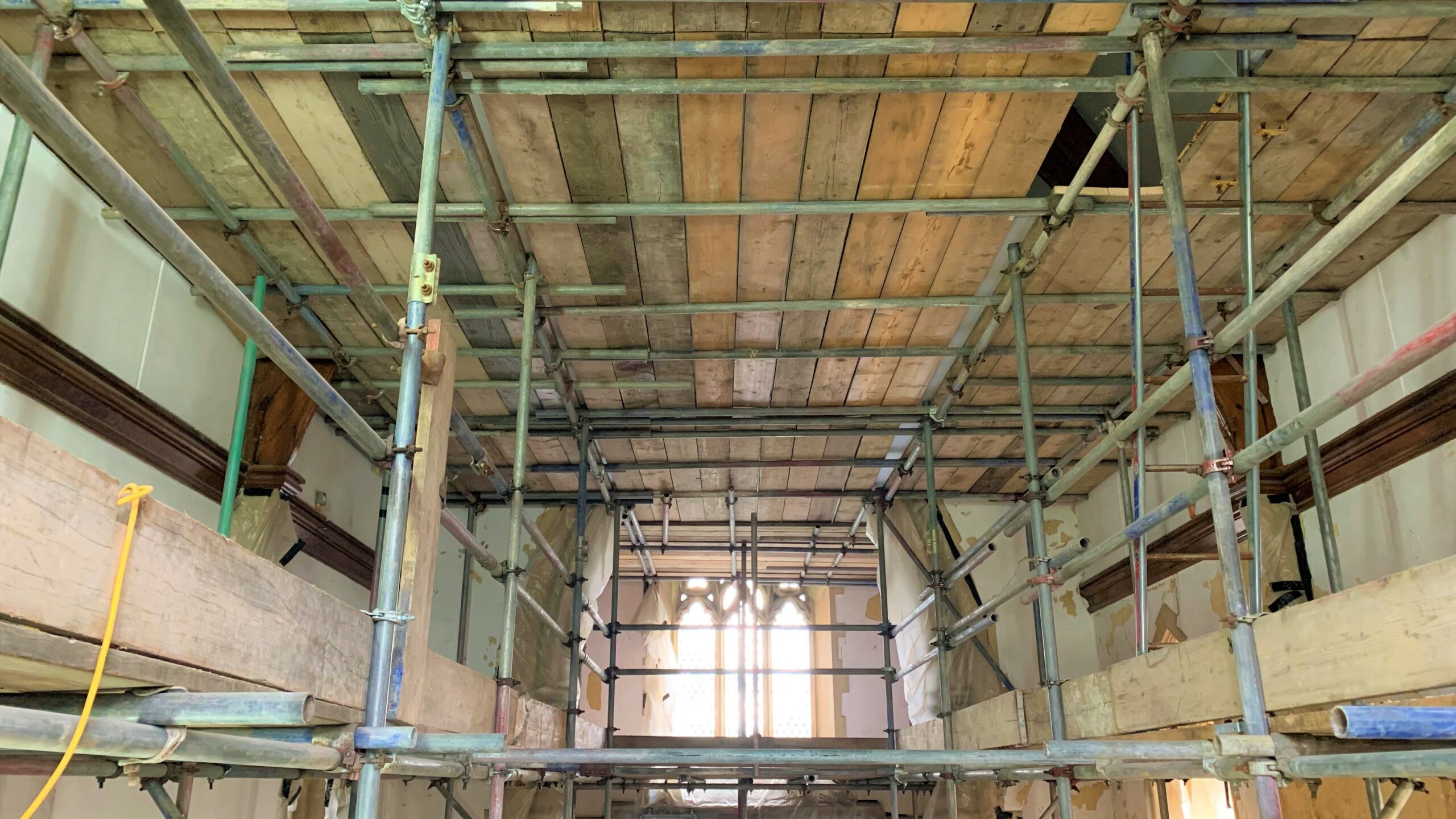 Timber and damp repairs to beams within chapel - similar to the lime plaster, the timber and damp repairs had drying times, however this has a shorter impact on the programme.